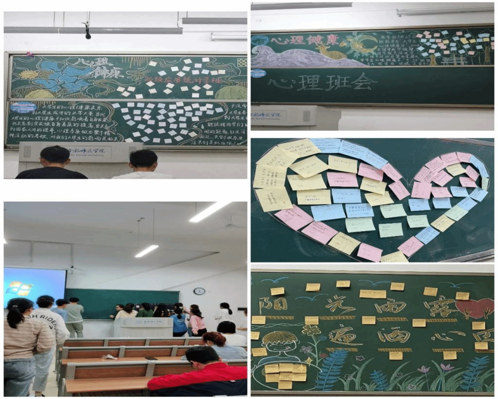每位同学以匿名的方式在便利贴上写出近期困惑自己的事,想对自己说出的鼓励的话,自己的目标或想对老师、同学等一直想说但并未说出口的话,最终以黑板报的形式呈现出来。便利贴之间有留白,便于同学们在旁边写出互相鼓励的话,或互相解答困惑问题。这样的活动既给学生提供表达自我的平台,又能让同学之间相互理解,相互促进心灵成长。