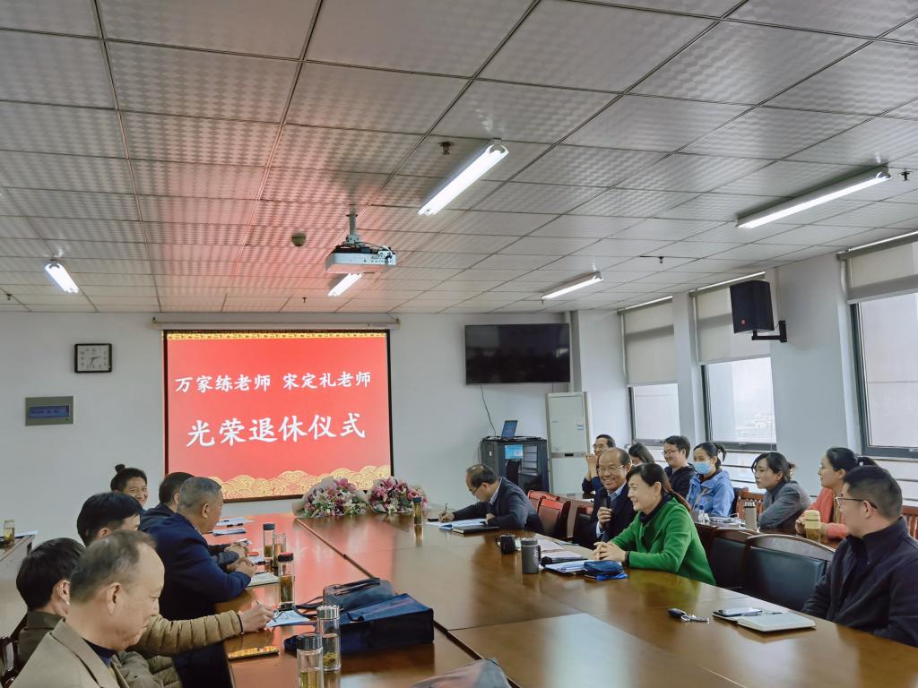 本网讯 为加强教师思想政治和师德师风建设,增强退休教师的荣誉感和成就感,发挥荣休老教师传帮带作用,引领青年教师传承数统学院尊师重教的优良传统和师德力量。11月23日下午,学院在行知楼1102会议室为万家练、宋定礼两位老师举办了光荣退休仪式,学院全体教职工参加了仪式,共同见证了这一温馨的时刻。会议由学院党委书记郑支农主持。